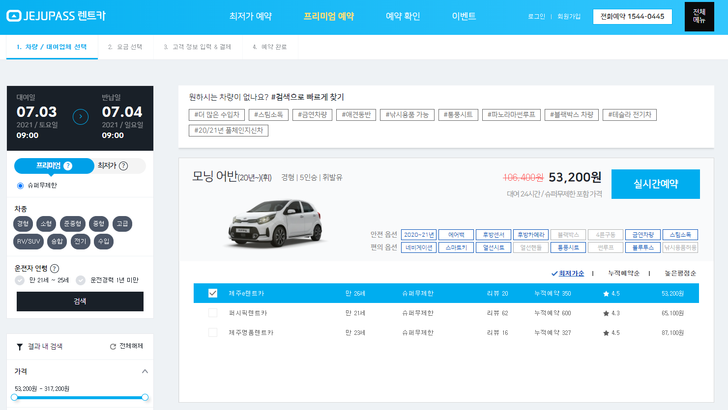저는 제주패스렌트카라는 사이트에서 예약했습니다.