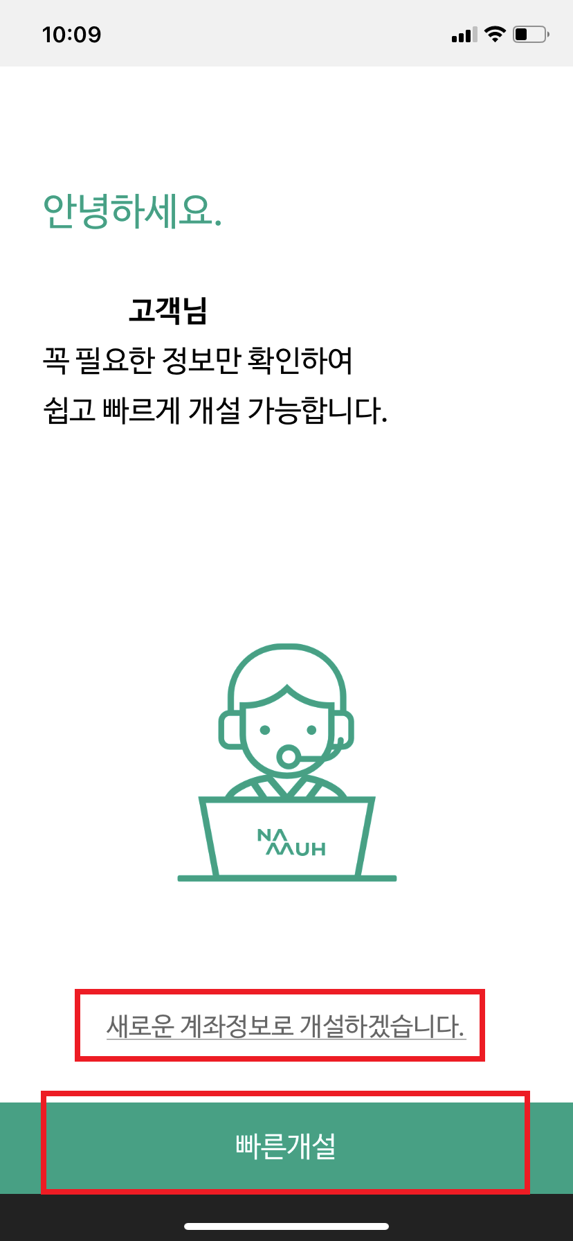 6. 저는 이미 계좌가 있어서 빠른 개설 버튼이 있는데요. 처음 만드시는 분들은 '새로운 계좌정보로 개설'로 진행해주시면 됩니다. 이미 CMA 계좌가 있으신 분들은 빠른 개설을 통해 바로 만드실수 있어요.